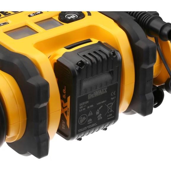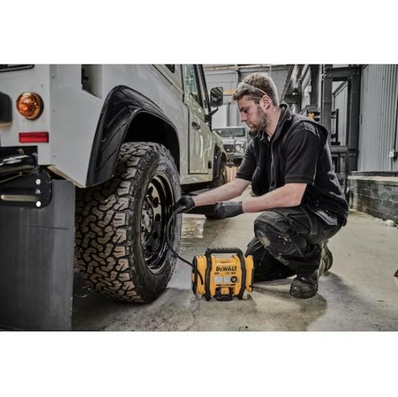 Gonfleur compact haute performance XR 18V de la marque Dewalt® - Durable, facile à utiliser et capable d’effectuer toutes les tâches de gonflage de pneus de voitures, camions légers et équipements divers avec à sa sortie haute pression offrant jusqu'à 14,7 l/min à 2,4 bars. Avec 3 sources d'alimentation différentes, ce gonfleur est compatible avec notre gamme de batteries XR 18V / 54V, il a une prise 12V (voiture) embarquée et peut être alimenté par la prise 230V avec l'adaptateur (vendu séparément). Il dispose également de la fonction de dégonflage et d’une puissance lampe LED pour plus de confort de travail.