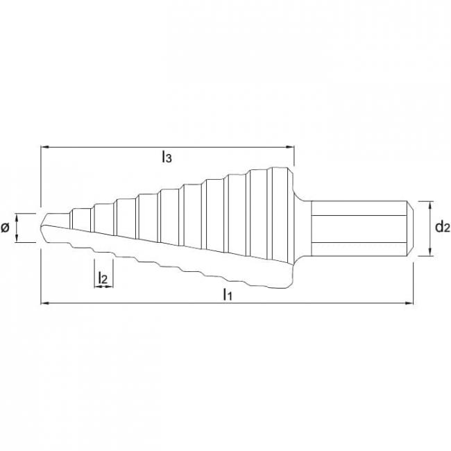 Foret à étage HSS vaporisé de la marque Phantom (Van Ommen) - Foret de qualité professionnelle haut de gamme - Revêtement HSS oxidé - Queue cylindrique - Idéal pour le travail sur divers matières - Groupe 44.100 - Fiabilité maximale, performances exceptionnelles - Garantie à vie.