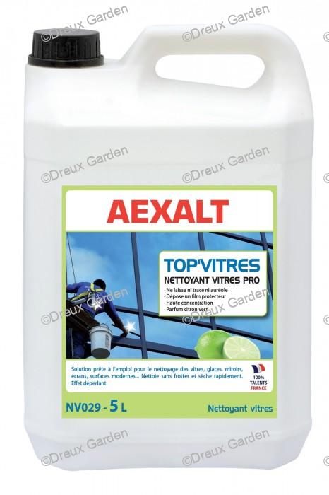 Aexalt Top'Vitre HDG est un nettoyant à vitre concentré : vitres, glaces, miroirs, stratifiés, pare-brises… Il élimine le calcaire et la nicotine sur les vitres, s’étale facilement, nettoie instantanément sans avoir à frotter et sèche rapidement, sans laisser ni trace, ni auréole. il dégage une senteur citronnée et repousse l’eau (effet déperlant).