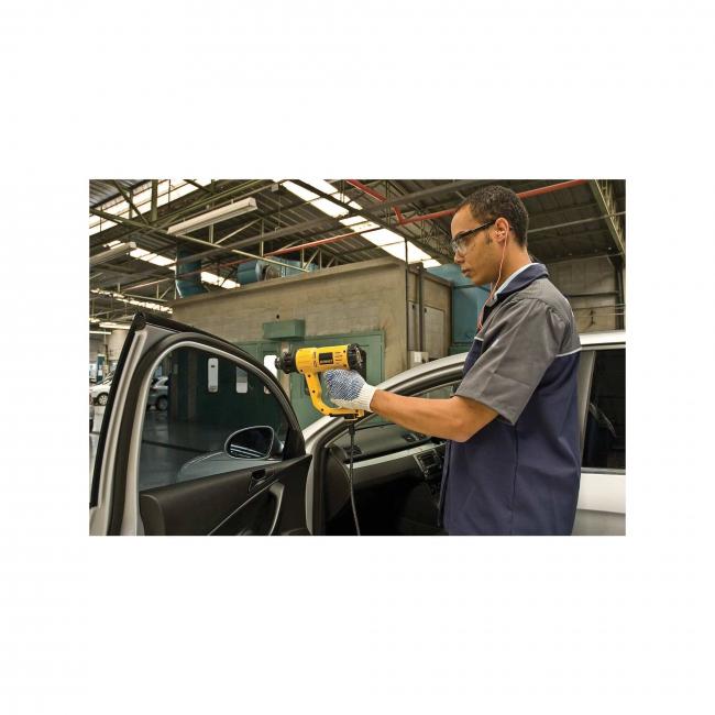 Décapeur thermique filaire 1800 W modèle D26411 de la marque DeWalt®, doté de capteur thermique et de débit changeable manuellement, pratique pour une machine polyvalente et apte à être utilisée pour de nombreuses applications, notamment les plus spécifiques.