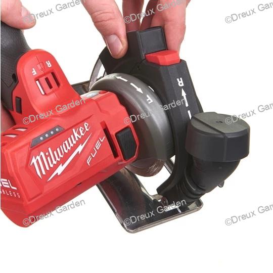 • Garde réglable et sens de rotation de la lame sélectionnable avant/arrière unique pour une protection de l'utilisateur des débris dans toutes les positions de coupe
