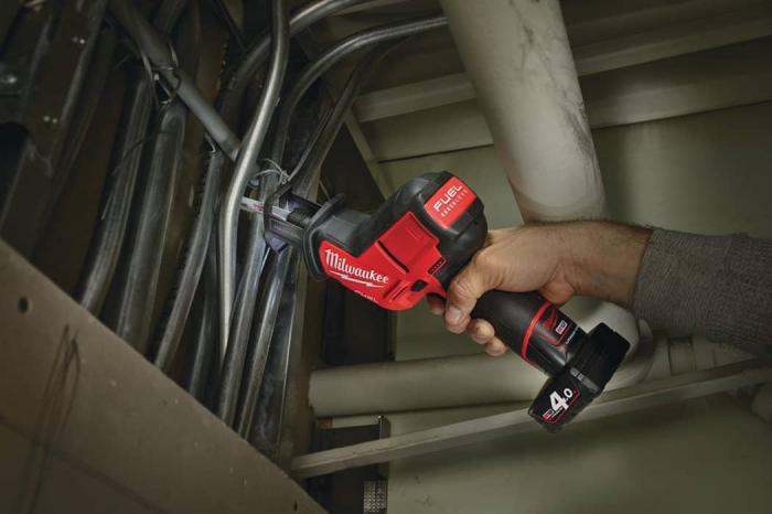Scie sabre COMPACT HACKZALL™ M12™ FUEL™ de la marque MILWAUKEE®, équipée d'une lame de la gamme Sawzall™, vous permettant de travailler dans tous types de zones, y compris les plus encombrées. Son système compatibilité offre la possibilité de pouvoir utiliser n'importe quelle batterie de la gamme M12™.